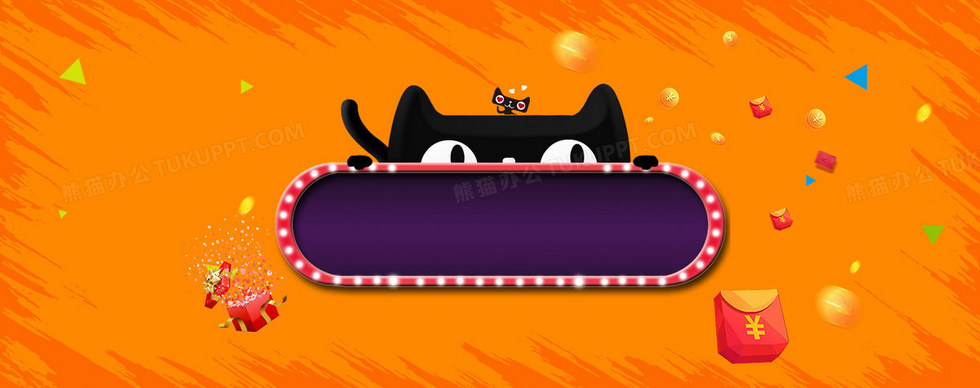 本作品内容为橙色卡通淘宝天猫双十一促销背景, 格式为 psd, 图片尺寸为1920 x 760, 作品中背景图片无需修改, 源文件无水印,可以直接使用, 欢迎使用熊猫办公。 如认为平台内容涉嫌侵权,可通过邮件:tousu@tukuppt.com提出书面通知,我们将及时处理。