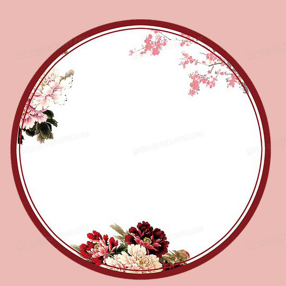 本作品内容为粉色圆形牡丹花卉边框, 格式为 psd, 图片尺寸为3500 x 3500, 作品中背景图片无需修改, 源文件无水印,可以直接使用, 欢迎使用熊猫办公。 如认为平台内容涉嫌侵权,可通过邮件:tousu@tukuppt.com提出书面通知,我们将及时处理。