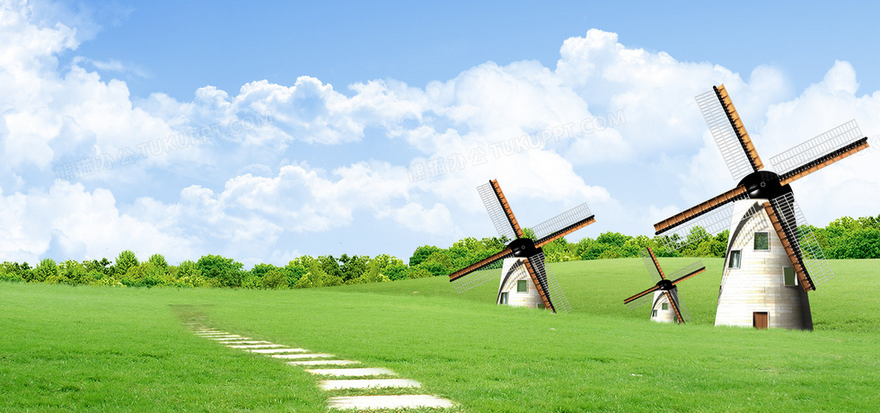 本作品内容为唯美大自然天空白云树木大风车小路绿色海报banner, 格式为 psd, 图片尺寸为1920 x 900, 作品中背景图片无需修改, 源文件无水印,可以直接使用, 欢迎使用熊猫办公。 如认为平台内容涉嫌侵权,可通过邮件:tousu@tukuppt.com提出书面通知,我们将及时处理。