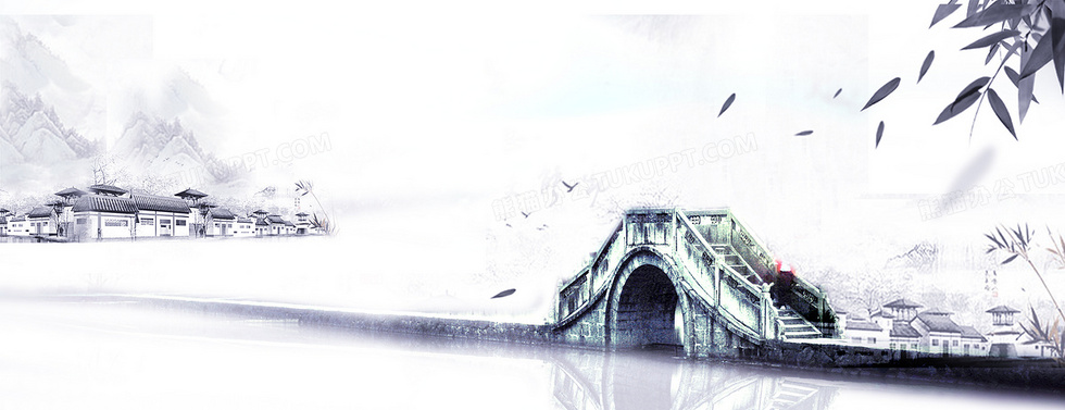 本作品内容为中国风水墨古桥背景素材, 格式为 jpg, 图片尺寸为7087 x 2727, 作品中背景图片无需修改, 源文件无水印,可以直接使用, 欢迎使用熊猫办公。 如认为平台内容涉嫌侵权,可通过邮件:tousu@tukuppt.com提出书面通知,我们将及时处理。