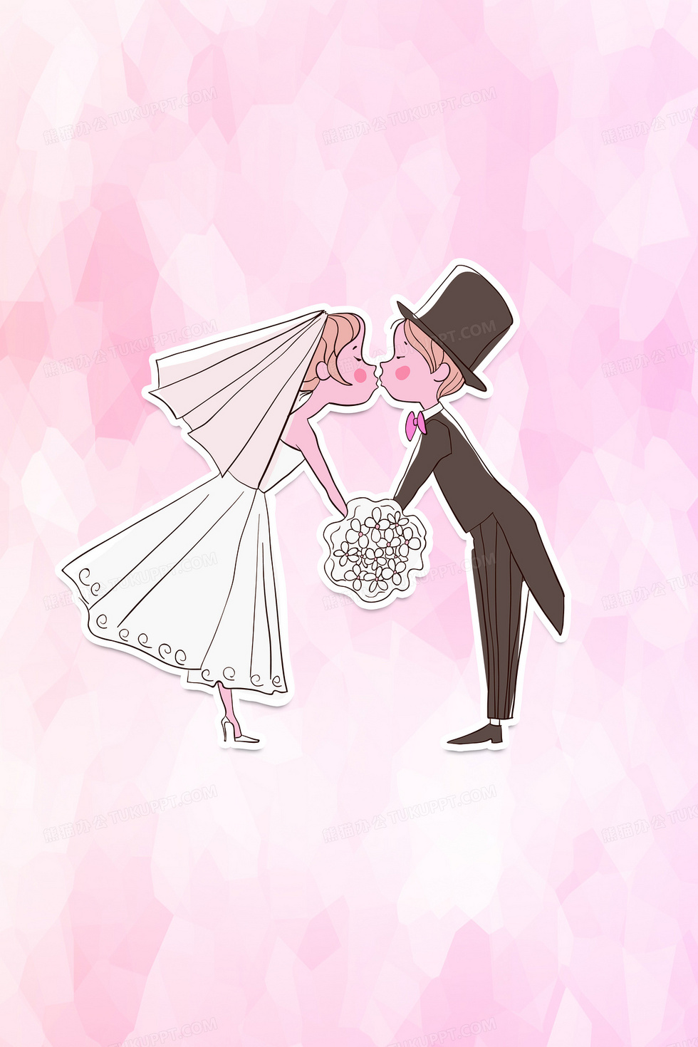 本作品内容为淡粉色情人节情侣接吻商场婚庆背景, 格式为 psd, 图片尺寸为3543 x 5315, 作品中背景图片无需修改, 源文件无水印,可以直接使用, 欢迎使用熊猫办公。 如认为平台内容涉嫌侵权,可通过邮件:tousu@tukuppt.com提出书面通知,我们将及时处理。
