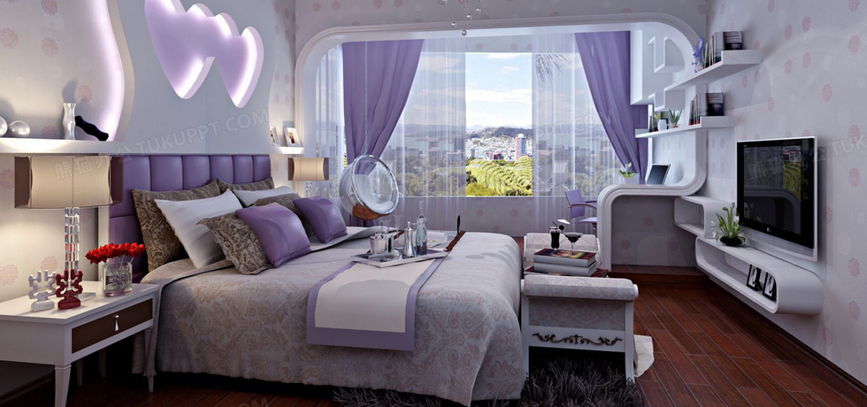本作品内容为清新浪漫室内卧室设计图, 格式为 jpg, 图片尺寸为1920 x 900, 作品中背景图片无需修改, 源文件无水印,可以直接使用, 欢迎使用熊猫办公。 如认为平台内容涉嫌侵权,可通过邮件:tousu@tukuppt.com提出书面通知,我们将及时处理。