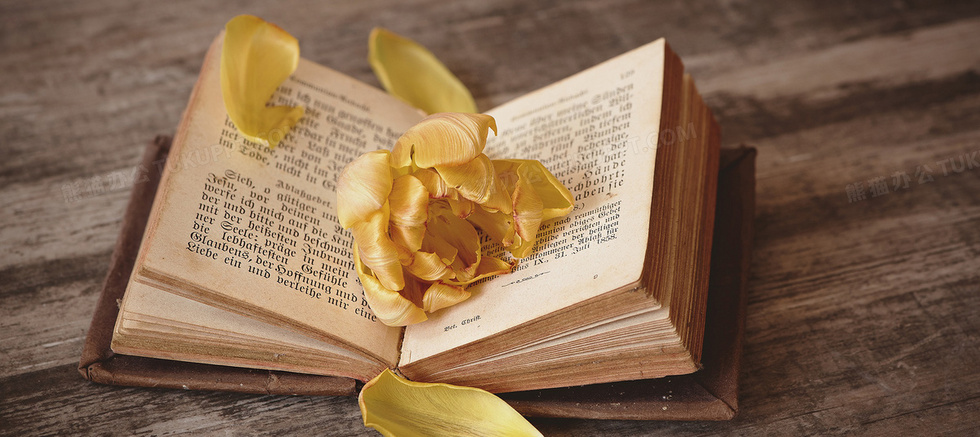 本作品内容为摄影英文书上摆着黄色的花, 格式为 jpg, 图片尺寸为1920 x 856, 作品中背景图片无需修改, 源文件无水印,可以直接使用, 欢迎使用熊猫办公。 如认为平台内容涉嫌侵权,可通过邮件:tousu@tukuppt.com提出书面通知,我们将及时处理。