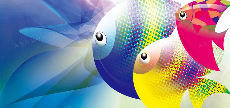 本作品内容为卡通鱼背景, 格式为 psd, 图片尺寸为1920 x 900, 作品中背景图片无需修改, 源文件无水印,可以直接使用, 欢迎使用熊猫办公。 如认为平台内容涉嫌侵权,可通过邮件:tousu@tukuppt.com提出书面通知,我们将及时处理。