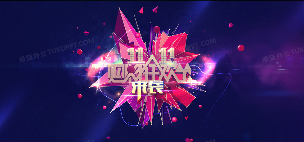本作品内容为双十一网购狂欢节, 格式为 psd, 图片尺寸为1920 x 900, 作品中背景图片无需修改, 源文件无水印,可以直接使用, 欢迎使用熊猫办公。 如认为平台内容涉嫌侵权,可通过邮件:tousu@tukuppt.com提出书面通知,我们将及时处理。