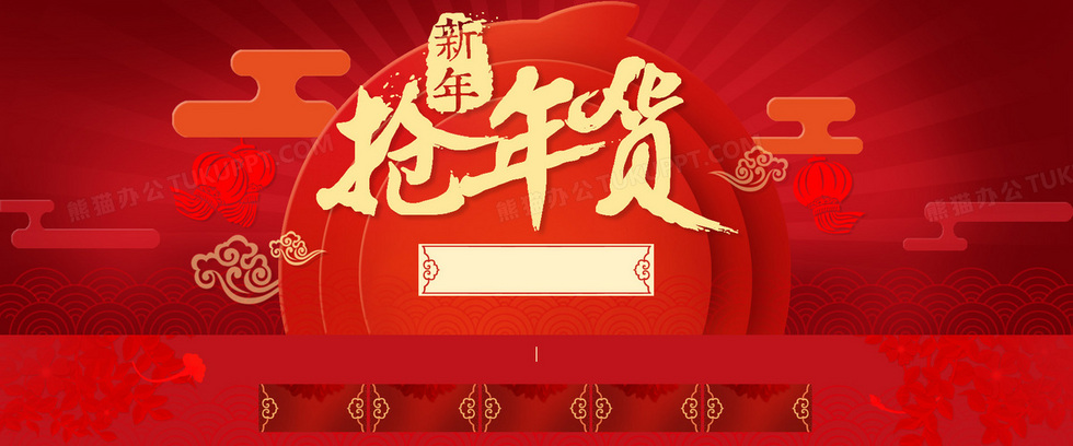 本作品内容为新春抢年货红色海报背景, 格式为 psd, 图片尺寸为1920 x 799, 作品中背景图片无需修改, 源文件无水印,可以直接使用, 欢迎使用熊猫办公。 如认为平台内容涉嫌侵权,可通过邮件:tousu@tukuppt.com提出书面通知,我们将及时处理。