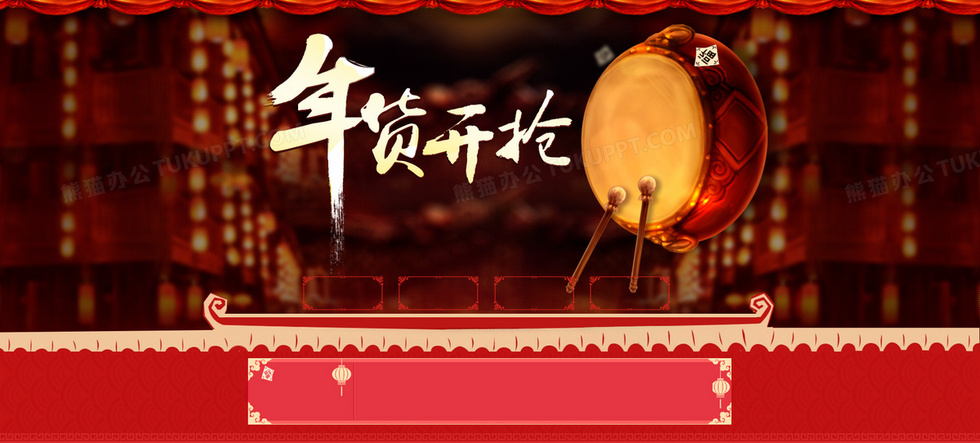 本作品内容为鼓年货开抢中国风背景banner, 格式为 psd, 图片尺寸为1920 x 867, 作品中背景图片无需修改, 源文件无水印,可以直接使用, 欢迎使用熊猫办公。 如认为平台内容涉嫌侵权,可通过邮件:tousu@tukuppt.com提出书面通知,我们将及时处理。