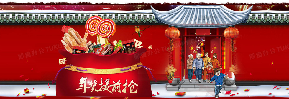 本作品内容为中国风年货提前抢海报, 格式为 psd, 图片尺寸为1920 x 660, 作品中背景图片无需修改, 源文件无水印,可以直接使用, 欢迎使用熊猫办公。 如认为平台内容涉嫌侵权,可通过邮件:tousu@tukuppt.com提出书面通知,我们将及时处理。