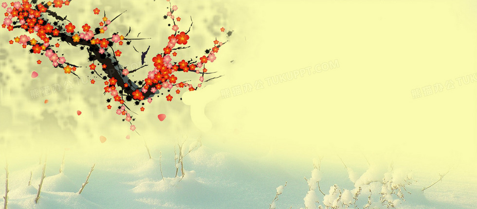 本作品内容为冬季梅花背景, 格式为 psd, 图片尺寸为1920 x 842, 作品中背景图片无需修改, 源文件无水印,可以直接使用, 欢迎使用熊猫办公。 如认为平台内容涉嫌侵权,可通过邮件:tousu@tukuppt.com提出书面通知,我们将及时处理。