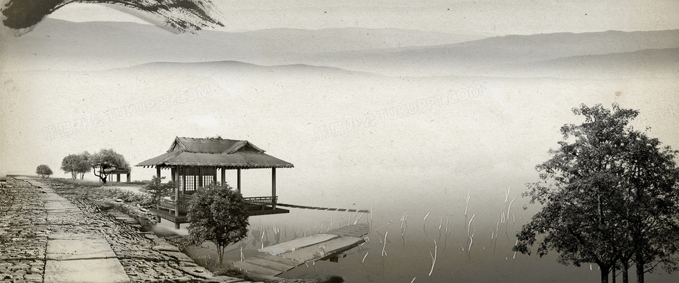 本作品内容为中国风水墨画亭子树背景banner, 格式为 psd, 图片尺寸为1920 x 801, 作品中背景图片无需修改, 源文件无水印,可以直接使用, 欢迎使用熊猫办公。 如认为平台内容涉嫌侵权,可通过邮件:tousu@tukuppt.com提出书面通知,我们将及时处理。