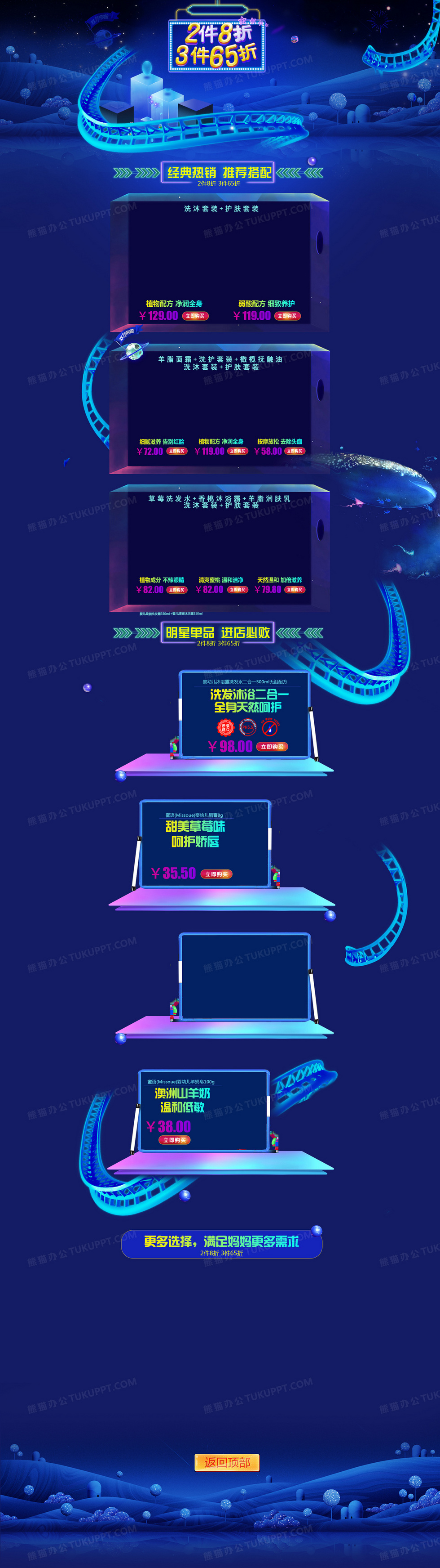 本作品内容为蓝色星空梦幻洗护店铺首页背景, 格式为 psd, 图片尺寸为1920 x 6829, 作品中背景图片无需修改, 源文件无水印,可以直接使用, 欢迎使用熊猫办公。 如认为平台内容涉嫌侵权,可通过邮件:tousu@tukuppt.com提出书面通知,我们将及时处理。