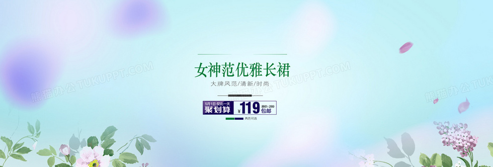 本作品内容为清新淡蓝色淘宝女装背景, 格式为 psd, 图片尺寸为1920 x 650, 作品中背景图片无需修改, 源文件无水印,可以直接使用, 欢迎使用熊猫办公。 如认为平台内容涉嫌侵权,可通过邮件:tousu@tukuppt.com提出书面通知,我们将及时处理。