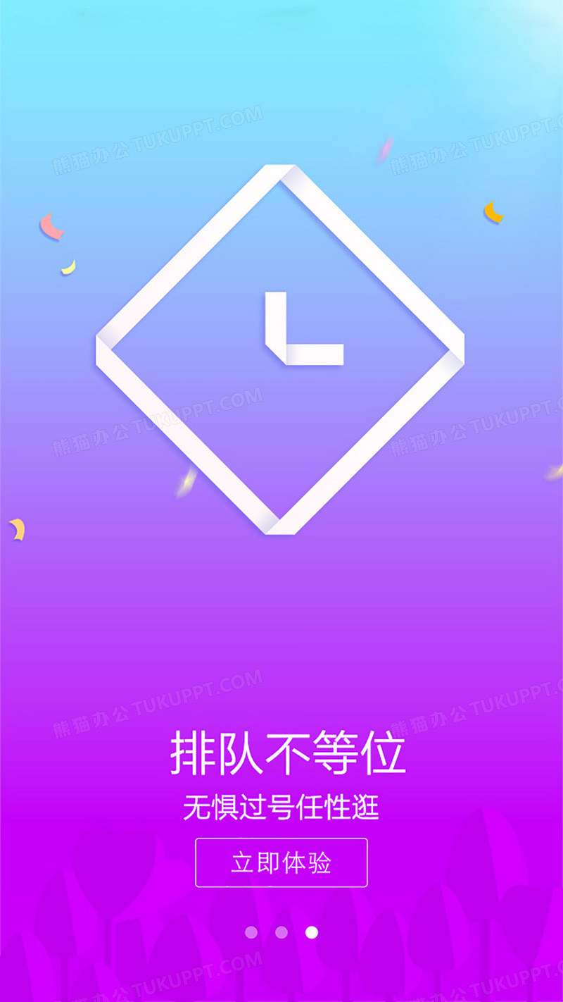 本作品内容为app在线排队引导页设计, 格式为 jpg, 图片尺寸为1080 x 1920, 作品中背景图片无需修改, 源文件无水印,可以直接使用, 欢迎使用熊猫办公。 如认为平台内容涉嫌侵权,可通过邮件:tousu@tukuppt.com提出书面通知,我们将及时处理。