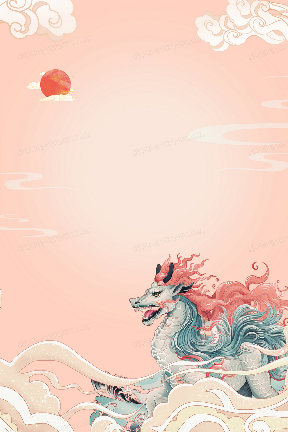 本作品内容为国潮中国风麒麟神兽背景, 格式为 psd, 大小49 MB, 图片尺寸为3543 x 5314, 作品中背景图片无需修改, 源文件无水印,可以直接使用, 欢迎使用熊猫办公。 如认为平台内容涉嫌侵权,可通过邮件:tousu@tukuppt.com提出书面通知,我们将及时处理。