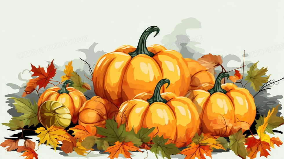 本作品内容为感恩节南瓜蔬菜节日秋天插画, 格式为 jpg, 大小5 MB, 图片尺寸为2912 x 1632, 源文件无水印, 欢迎使用熊猫办公。 如认为平台内容涉嫌侵权,可通过邮件:tousu@tukuppt.com提出书面通知,我们将及时处理。