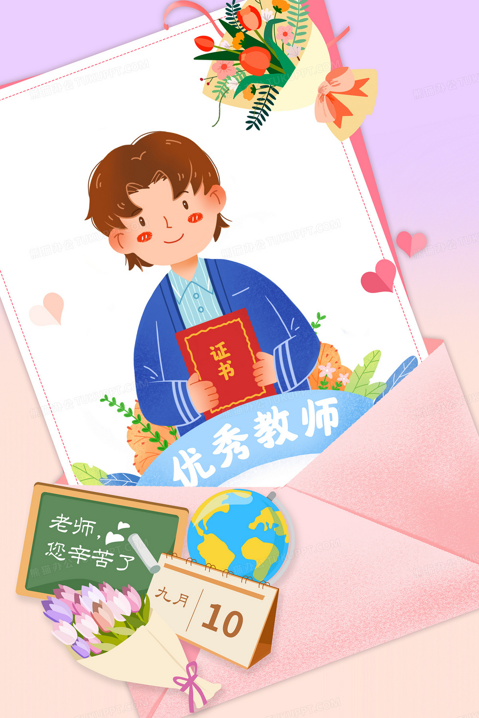 本作品内容为教师节最美教师卡通人物插画, 格式为 psd, 大小58 MB, 请使用软件PhotoShop(CS6)打开, 源文件无水印, 欢迎使用熊猫办公。 如认为平台内容涉嫌侵权,可通过邮件:tousu@tukuppt.com提出书面通知,我们将及时处理。
