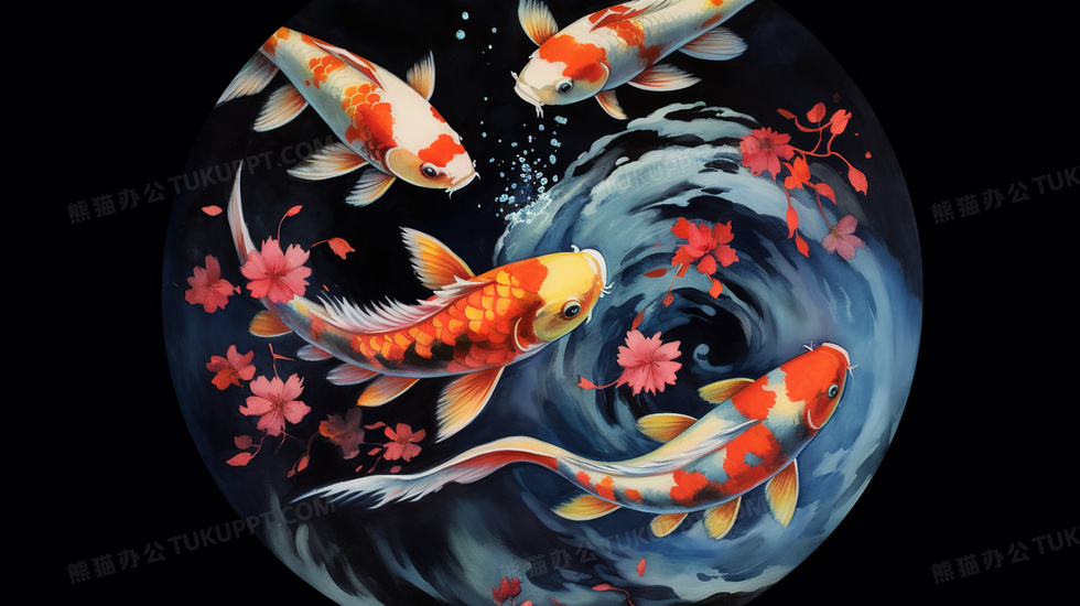 本作品内容为彩色中国风锦鲤鲤鱼插画, 格式为 jpg, 大小5 MB, 图片尺寸为2912 x 1632, 源文件无水印, 欢迎使用熊猫办公。 如认为平台内容涉嫌侵权,可通过邮件:tousu@tukuppt.com提出书面通知,我们将及时处理。