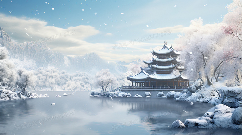 本作品内容为冬季大雪森林湖泊旁的塔楼插画, 格式为 jpg, 大小8 MB, 图片尺寸为2912 x 1632, 源文件无水印, 欢迎使用熊猫办公。 如认为平台内容涉嫌侵权,可通过邮件:tousu@tukuppt.com提出书面通知,我们将及时处理。