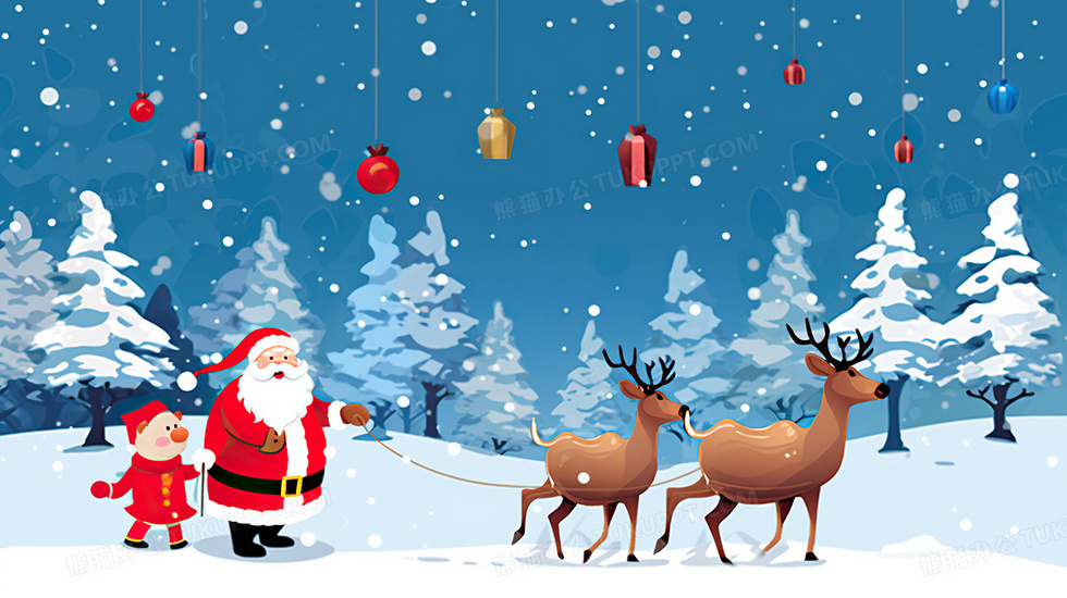 本作品内容为圣诞节卡通圣诞老人和麋鹿插画, 格式为 jpg, 大小6 MB, 图片尺寸为2912 x 1632, 源文件无水印, 欢迎使用熊猫办公。 如认为平台内容涉嫌侵权,可通过邮件:tousu@tukuppt.com提出书面通知,我们将及时处理。