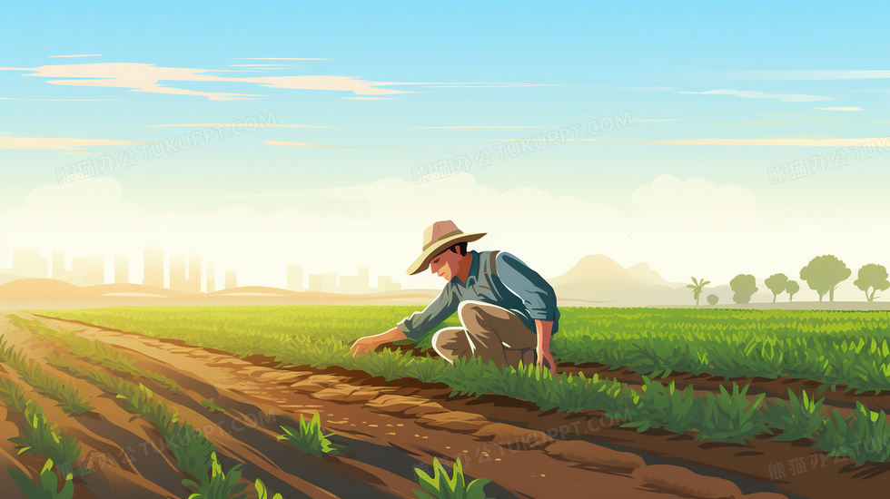 本作品内容为节约粮食农民在田里插秧场景插画, 格式为 jpg, 大小5 MB, 图片尺寸为2912 x 1632, 源文件无水印, 欢迎使用熊猫办公。 如认为平台内容涉嫌侵权,可通过邮件:tousu@tukuppt.com提出书面通知,我们将及时处理。