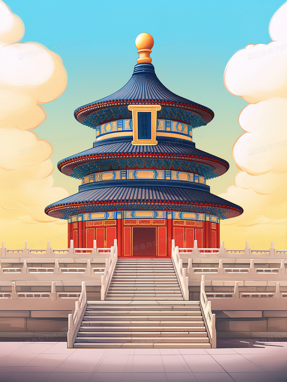 本作品内容为北京天坛中国古典建筑插画, 格式为 jpg, 大小5 MB, 图片尺寸为1856 x 2464, 源文件无水印, 欢迎使用熊猫办公。 如认为平台内容涉嫌侵权,可通过邮件:tousu@tukuppt.com提出书面通知,我们将及时处理。