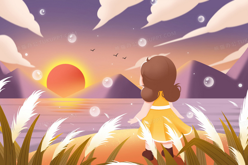 本作品内容为可爱女孩秋日傍晚在芦苇丛看日落插画, 格式为 psd, 大小25 MB, 请使用软件PhotoShop(CS4)打开, 源文件无水印, 欢迎使用熊猫办公。 如认为平台内容涉嫌侵权,可通过邮件:tousu@tukuppt.com提出书面通知,我们将及时处理。