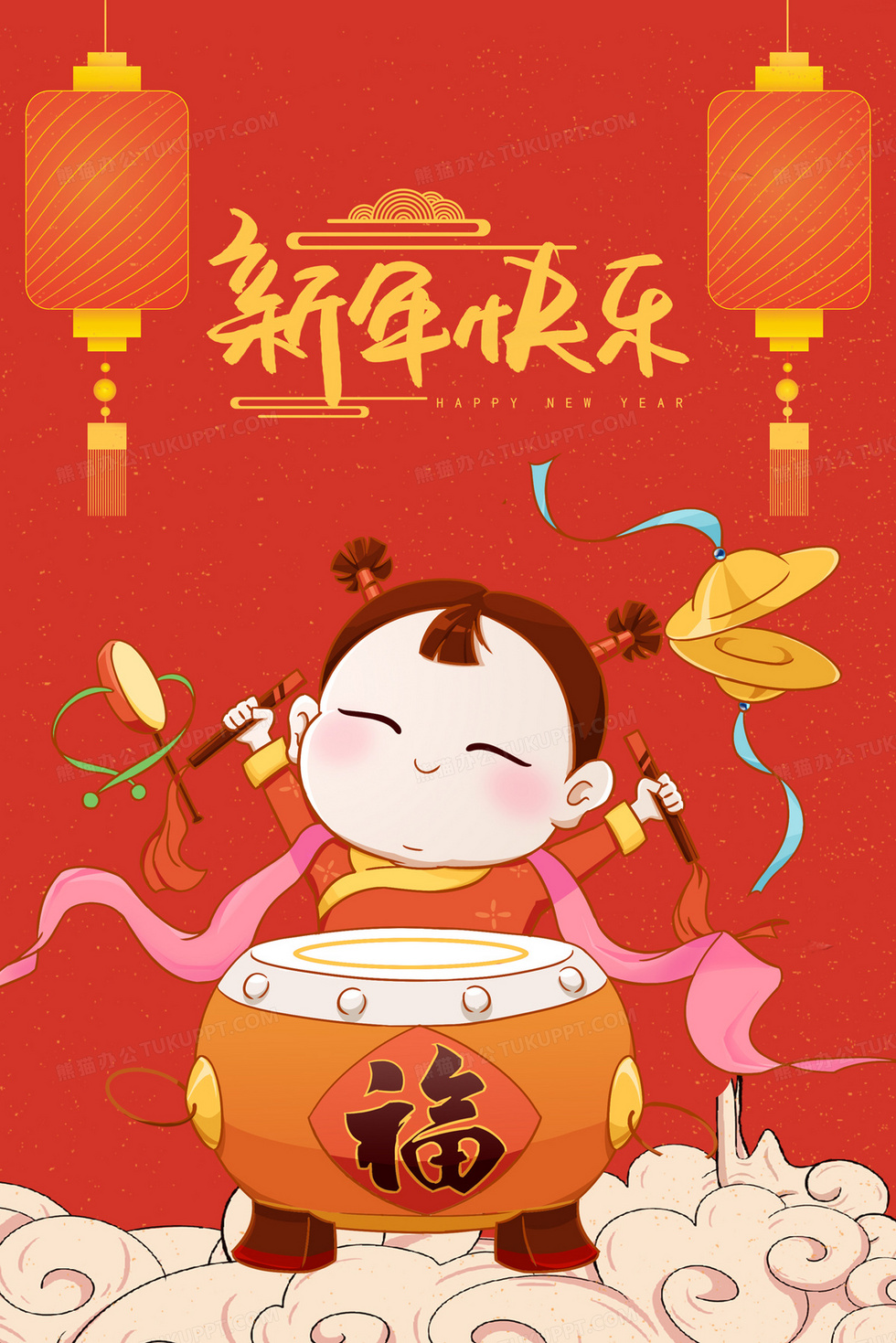 本作品内容为春节女童击鼓插画, 格式为 psd, 大小20 MB, 请使用软件PhotoShop(CC)打开, 源文件无水印, 欢迎使用熊猫办公。 如认为平台内容涉嫌侵权,可通过邮件:tousu@tukuppt.com提出书面通知,我们将及时处理。