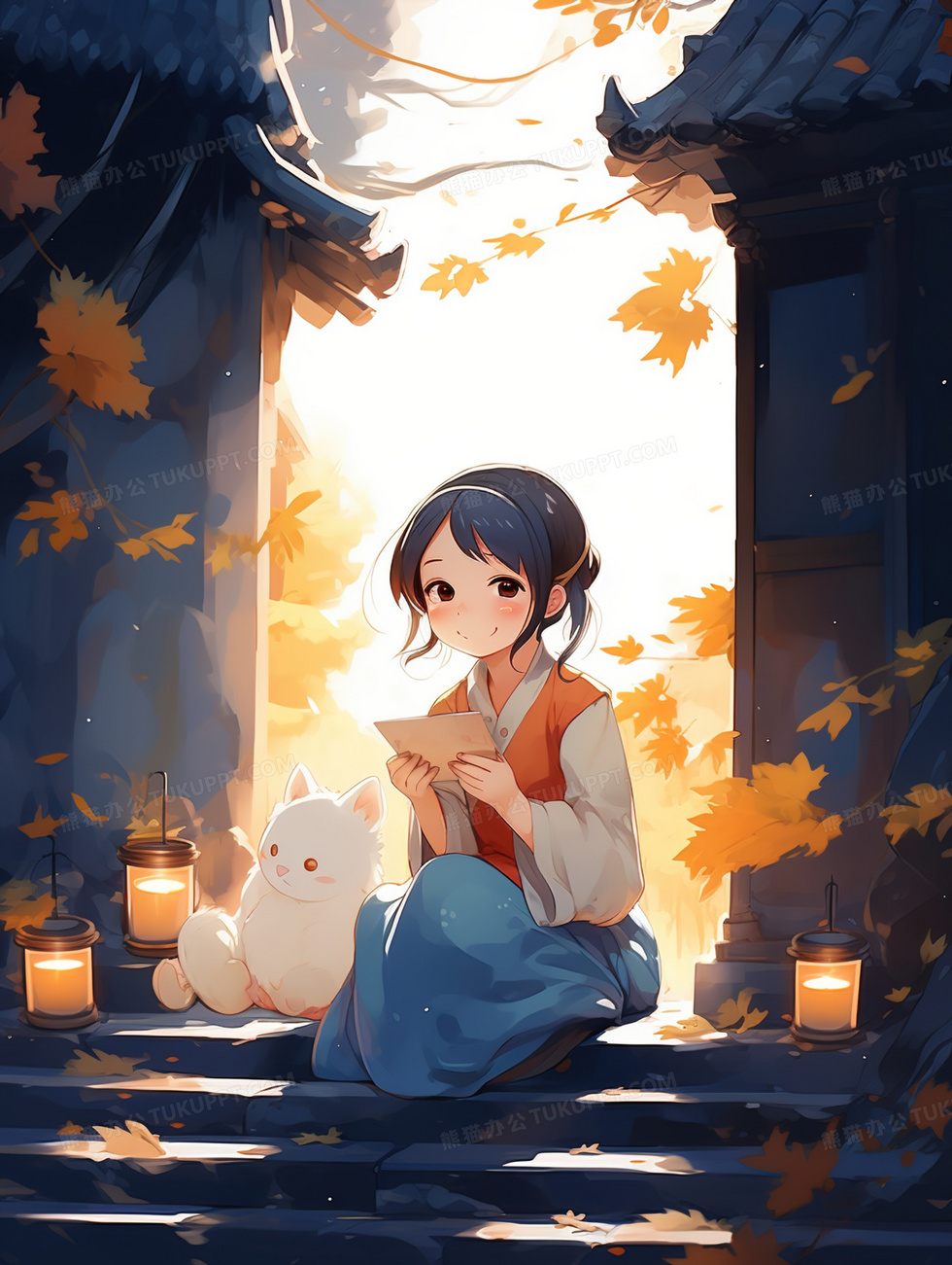 本作品内容为冬天坐在落满金色树叶石阶上女孩和猫咪插画, 格式为 jpg, 大小4 MB, 图片尺寸为1856 x 2464, 源文件无水印, 欢迎使用熊猫办公。 如认为平台内容涉嫌侵权,可通过邮件:tousu@tukuppt.com提出书面通知,我们将及时处理。