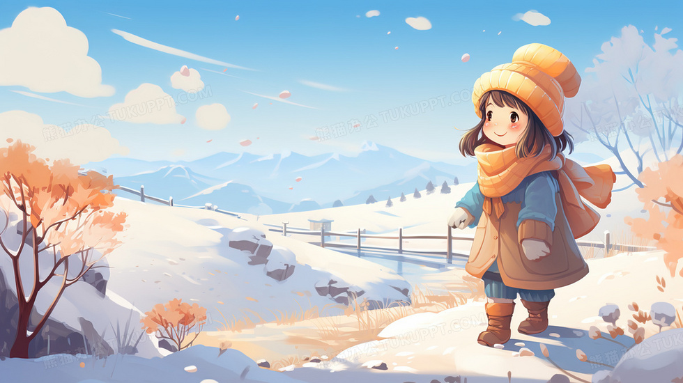 本作品内容为冬天山坡雪地上戴帽子围巾的女孩插画, 格式为 jpg, 大小4 MB, 图片尺寸为2912 x 1632, 源文件无水印, 欢迎使用熊猫办公。 如认为平台内容涉嫌侵权,可通过邮件:tousu@tukuppt.com提出书面通知,我们将及时处理。