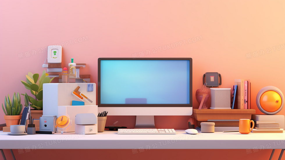 本作品内容为3D立体电脑办公桌面场景插画, 格式为 jpg, 大小4 MB, 图片尺寸为2912 x 1632, 源文件无水印, 欢迎使用熊猫办公。 如认为平台内容涉嫌侵权,可通过邮件:tousu@tukuppt.com提出书面通知,我们将及时处理。