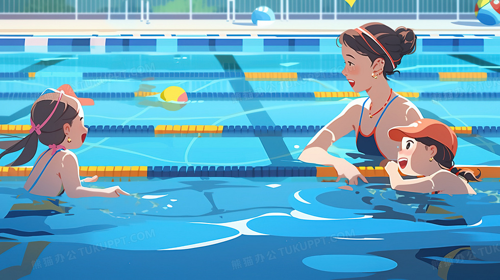本作品内容为夏天孩子们认真的和教练学习游泳创意插画, 格式为 jpg, 大小6 MB, 图片尺寸为2912 x 1632, 源文件无水印, 欢迎使用熊猫办公。 如认为平台内容涉嫌侵权,可通过邮件:tousu@tukuppt.com提出书面通知,我们将及时处理。
