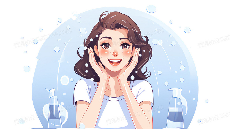本作品内容为可爱卡通女孩洗脸护肤创意插画, 格式为 jpg, 大小4 MB, 图片尺寸为2912 x 1632, 源文件无水印, 欢迎使用熊猫办公。 如认为平台内容涉嫌侵权,可通过邮件:tousu@tukuppt.com提出书面通知,我们将及时处理。