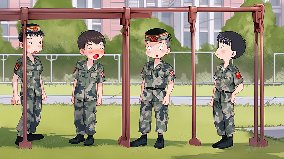 本作品内容为学生军训户外训练插画, 格式为 jpg, 大小7 MB, 图片尺寸为2912 x 1632, 源文件无水印, 欢迎使用熊猫办公。 如认为平台内容涉嫌侵权,可通过邮件:tousu@tukuppt.com提出书面通知,我们将及时处理。