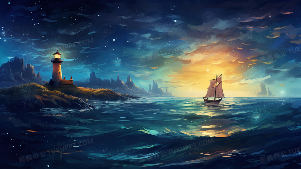 本作品内容为手绘风海面上的帆船和岸边的灯塔创意插画, 格式为 jpg, 大小6 MB, 图片尺寸为2912 x 1632, 源文件无水印, 欢迎使用熊猫办公。 如认为平台内容涉嫌侵权,可通过邮件:tousu@tukuppt.com提出书面通知,我们将及时处理。