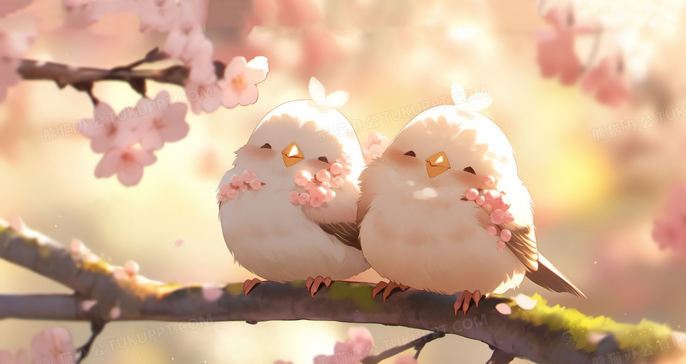 本作品内容为樱花树枝上两只可爱的胖乎乎的小鸟创意插画, 格式为 jpg, 大小4 MB, 图片尺寸为2912 x 1548, 源文件无水印, 欢迎使用熊猫办公。 如认为平台内容涉嫌侵权,可通过邮件:tousu@tukuppt.com提出书面通知,我们将及时处理。