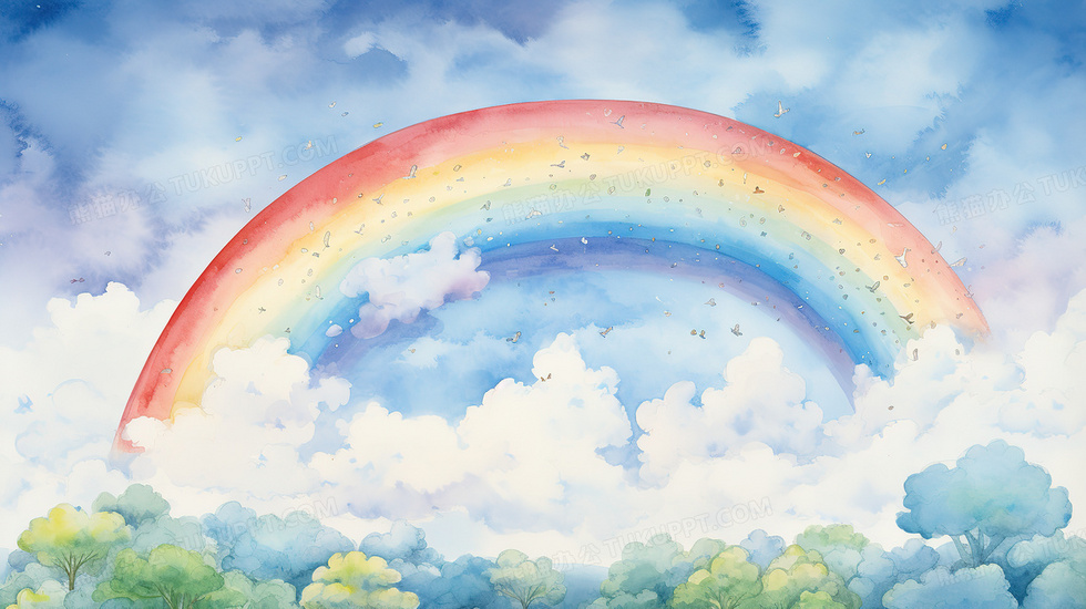 本作品内容为小清新天空上美丽的彩虹创意水彩插画, 格式为 jpg, 大小6 MB, 图片尺寸为2912 x 1632, 源文件无水印, 欢迎使用熊猫办公。 如认为平台内容涉嫌侵权,可通过邮件:tousu@tukuppt.com提出书面通知,我们将及时处理。