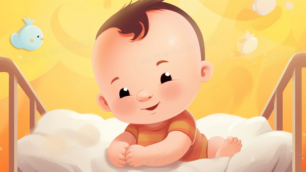 本作品内容为婴儿床里的小宝宝插画, 格式为 jpg, 大小4 MB, 图片尺寸为2912 x 1632, 源文件无水印, 欢迎使用熊猫办公。 如认为平台内容涉嫌侵权,可通过邮件:tousu@tukuppt.com提出书面通知,我们将及时处理。