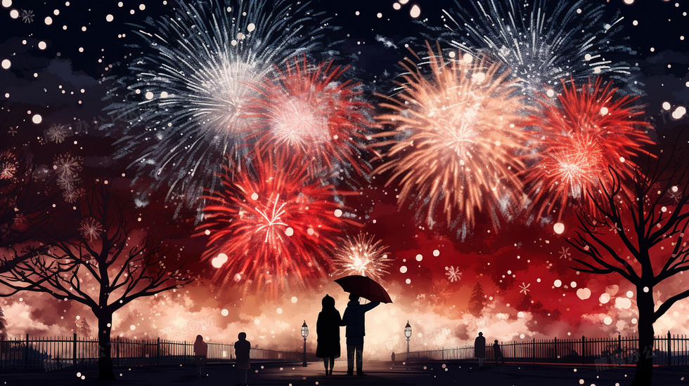 本作品内容为唯美春节节日烟花插画, 格式为 jpg, 大小7 MB, 图片尺寸为2912 x 1632, 源文件无水印, 欢迎使用熊猫办公。 如认为平台内容涉嫌侵权,可通过邮件:tousu@tukuppt.com提出书面通知,我们将及时处理。