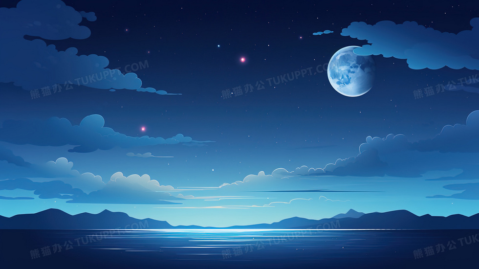 本作品内容为唯美夜晚月下星空插画, 格式为 jpg, 大小5 MB, 图片尺寸为2912 x 1632, 源文件无水印, 欢迎使用熊猫办公。 如认为平台内容涉嫌侵权,可通过邮件:tousu@tukuppt.com提出书面通知,我们将及时处理。