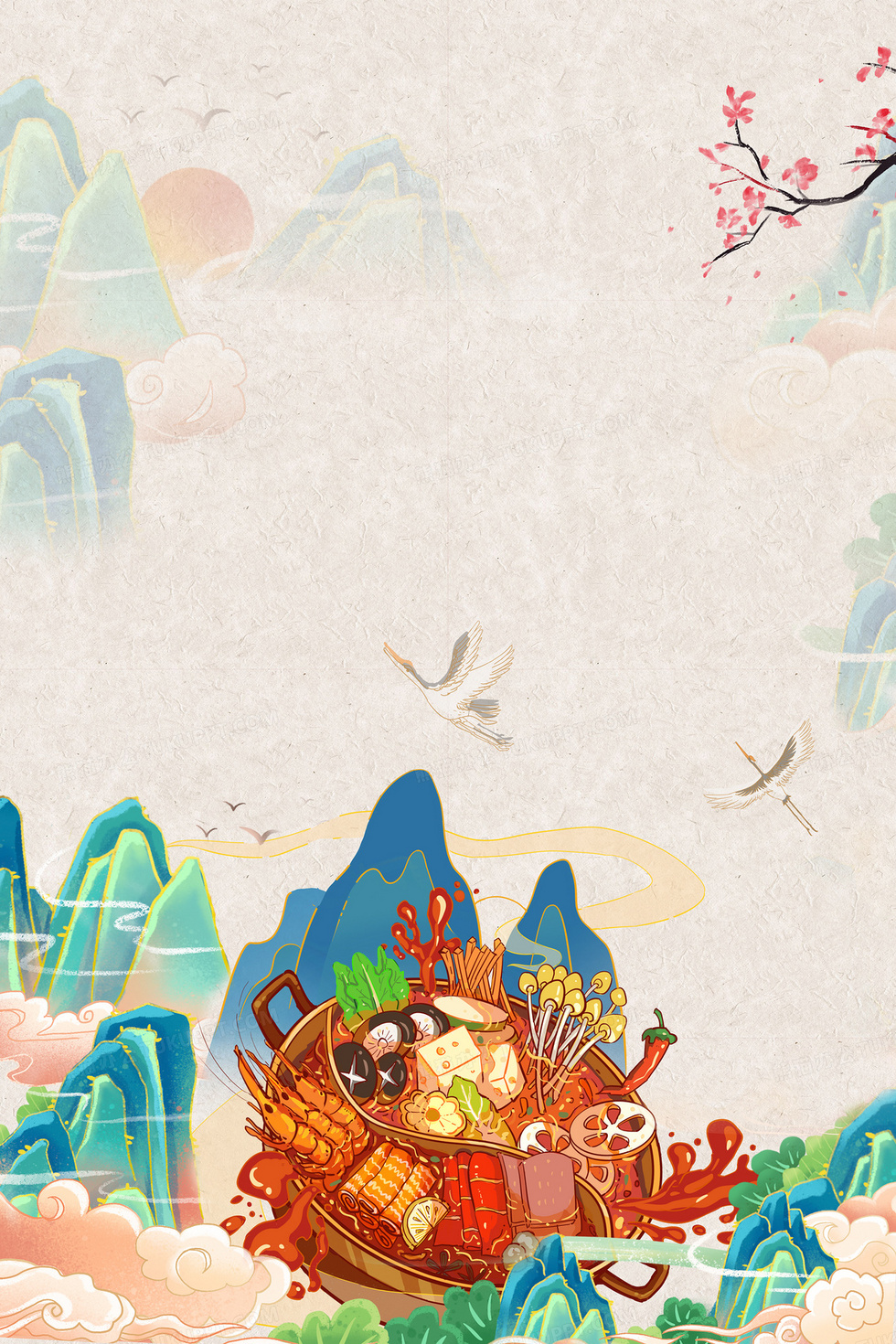 本作品内容为中国风创意火锅背景, 格式为 psd, 大小138 MB, 图片尺寸为3543 x 5315, 作品中背景图片无需修改, 源文件无水印,可以直接使用, 欢迎使用熊猫办公。 如认为平台内容涉嫌侵权,可通过邮件:tousu@tukuppt.com提出书面通知,我们将及时处理。