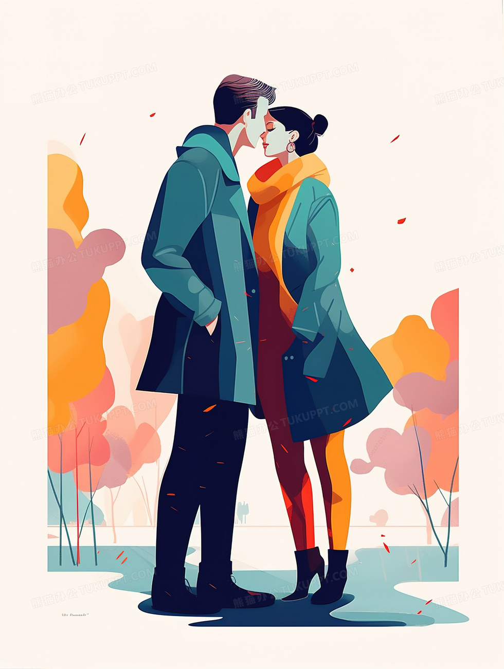 本作品内容为亲吻的情侣矢量扁平插画, 格式为 jpg, 大小2 MB, 图片尺寸为1856 x 2464, 源文件无水印, 欢迎使用熊猫办公。 如认为平台内容涉嫌侵权,可通过邮件:tousu@tukuppt.com提出书面通知,我们将及时处理。