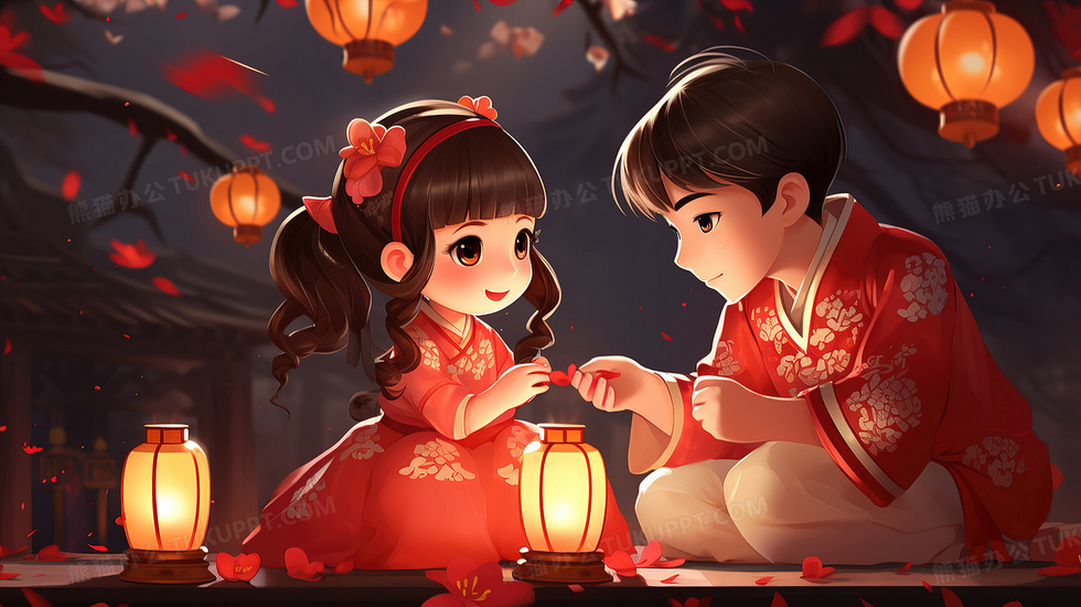 本作品内容为元宵节古城花灯下的男孩女孩插画, 格式为 jpg, 大小3 MB, 图片尺寸为2912 x 1632, 源文件无水印, 欢迎使用熊猫办公。 如认为平台内容涉嫌侵权,可通过邮件:tousu@tukuppt.com提出书面通知,我们将及时处理。