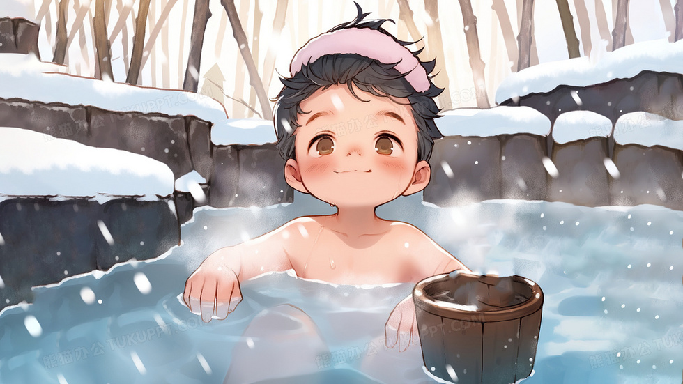 本作品内容为卡通冬天男孩养生泡温泉插画, 格式为 jpg, 大小3 MB, 图片尺寸为2832 x 1592, 源文件无水印, 欢迎使用熊猫办公。 如认为平台内容涉嫌侵权,可通过邮件:tousu@tukuppt.com提出书面通知,我们将及时处理。