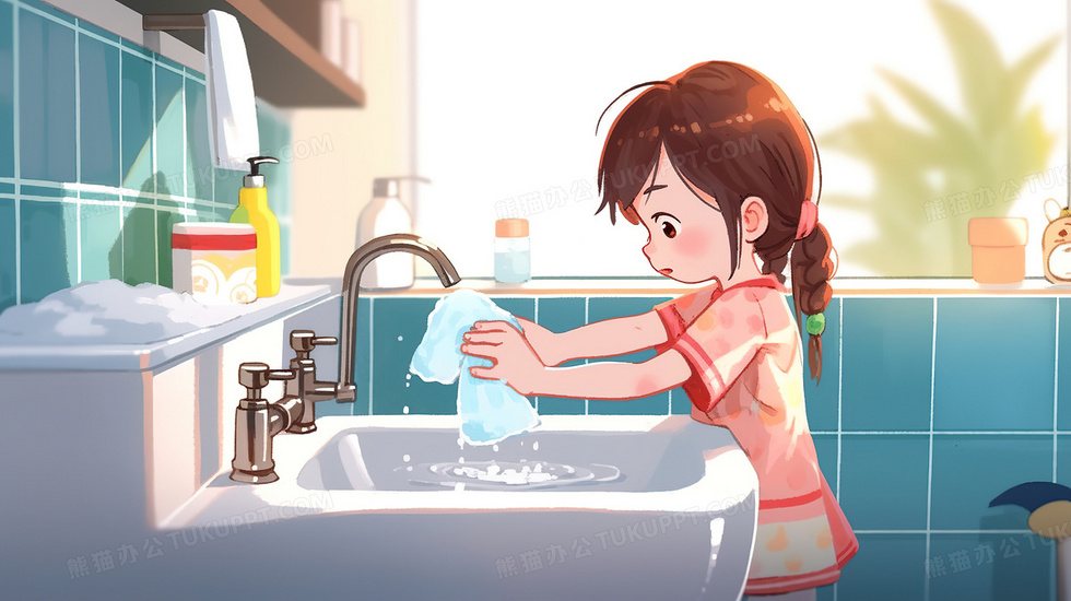 本作品内容为卡通风可爱的小女孩在洗手, 格式为 jpg, 大小2 MB, 图片尺寸为2912 x 1632, 源文件无水印, 欢迎使用熊猫办公。 如认为平台内容涉嫌侵权,可通过邮件:tousu@tukuppt.com提出书面通知,我们将及时处理。