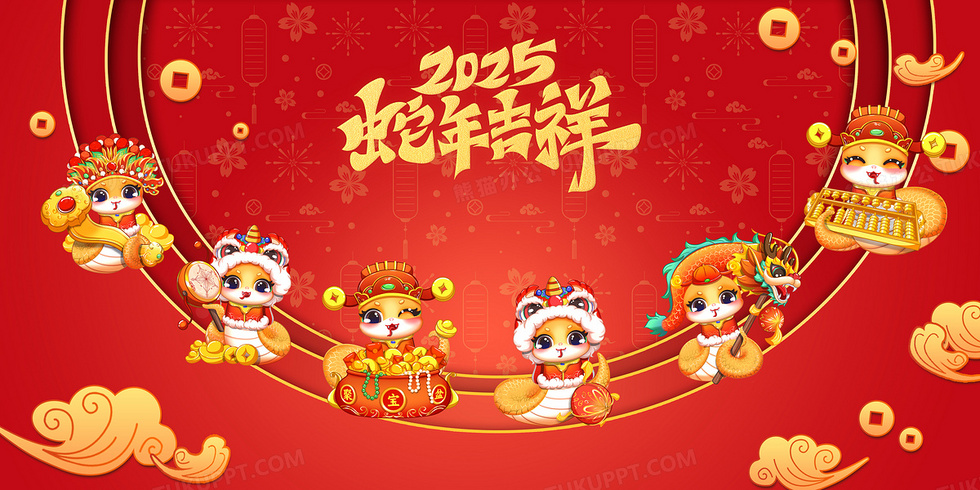 本作品内容为2025新年创意插画蛇年生肖背景, 格式为 psd, 大小155 MB, 图片尺寸为4724 x 2362, 作品中背景图片无需修改, 源文件无水印,可以直接使用, 欢迎使用熊猫办公。 如认为平台内容涉嫌侵权,可通过邮件:tousu@tukuppt.com提出书面通知,我们将及时处理。