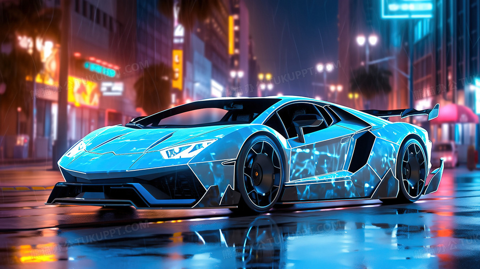本作品内容为霓虹灯城市道路上的一辆跑车插画, 格式为 jpg, 大小3 MB, 图片尺寸为2912 x 1632, 源文件无水印, 欢迎使用熊猫办公。 如认为平台内容涉嫌侵权,可通过邮件:tousu@tukuppt.com提出书面通知,我们将及时处理。