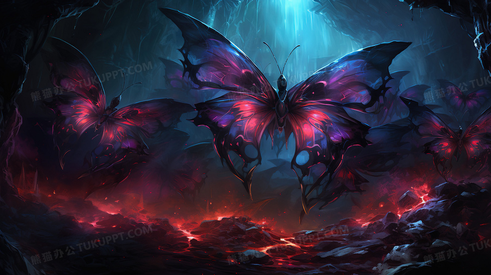 本作品内容为暗夜山洞里发光的蝴蝶插画, 格式为 jpg, 大小6 MB, 图片尺寸为2912 x 1632, 源文件无水印, 欢迎使用熊猫办公。 如认为平台内容涉嫌侵权,可通过邮件:tousu@tukuppt.com提出书面通知,我们将及时处理。