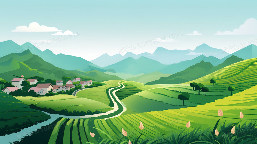 本作品内容为春季远山乡村辽阔的水稻田插画, 格式为 jpg, 大小5 MB, 图片尺寸为2912 x 1632, 源文件无水印, 欢迎使用熊猫办公。 如认为平台内容涉嫌侵权,可通过邮件:tousu@tukuppt.com提出书面通知,我们将及时处理。