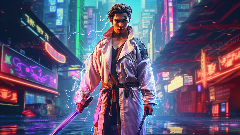 本作品内容为赛博朋克彩色创意武术卡通插画, 格式为 jpg, 大小6 MB, 图片尺寸为2912 x 1632, 源文件无水印, 欢迎使用熊猫办公。 如认为平台内容涉嫌侵权,可通过邮件:tousu@tukuppt.com提出书面通知,我们将及时处理。
