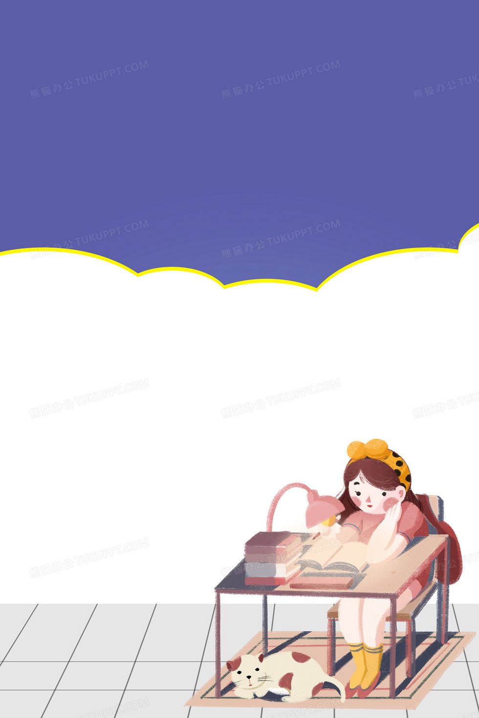 本作品内容为世界读书日看书手绘卡通背景, 格式为 psd, 大小16 MB, 图片尺寸为3543 x 5315, 作品中背景图片无需修改, 源文件无水印,可以直接使用, 欢迎使用熊猫办公。 如认为平台内容涉嫌侵权,可通过邮件:tousu@tukuppt.com提出书面通知,我们将及时处理。